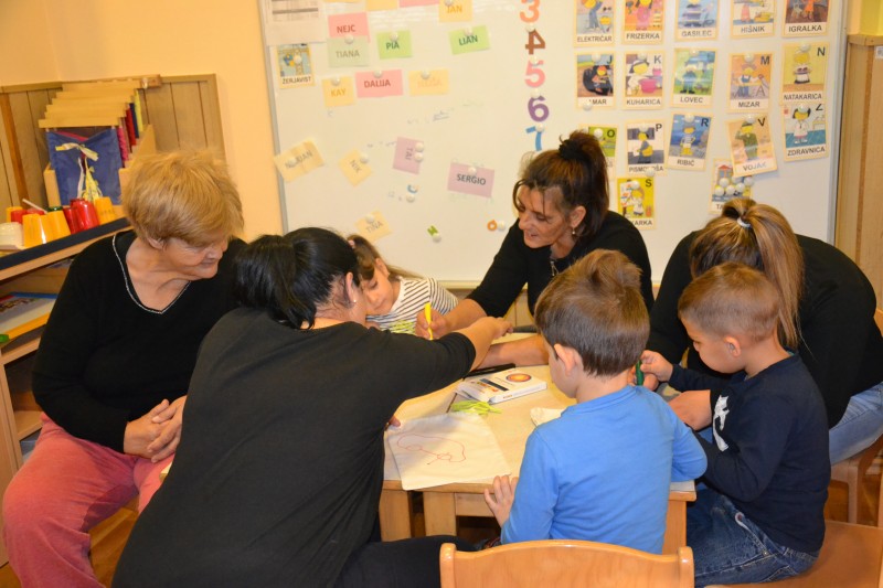- Ga. Silva Nemeš iz CZRS je otrokom prinesla blazine za telovadbo.