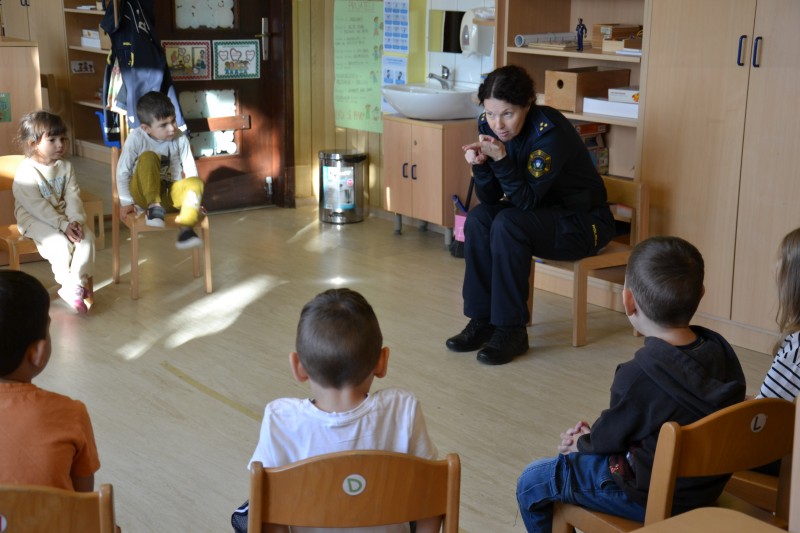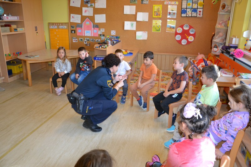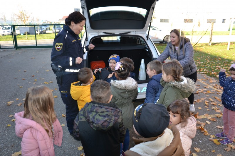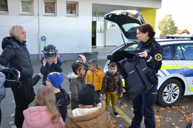 Ker spoznavamo različne poklice, smo danes v vrtec povabili policistko. Policistka Vesna, nam je predstavila delo policista.