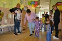 Medse smo povabili babice in dedke, ki so nam povedali kako so se oni igrali nekoč. Skupaj z njimi smo zaplesali stare ljudske plese in se igrali stare igre: ristanc, 3 v vrsto, brnkevca... Popeljali smo jih v čas njihove mladosti, da smo ga lahko spoznali tudi mi.