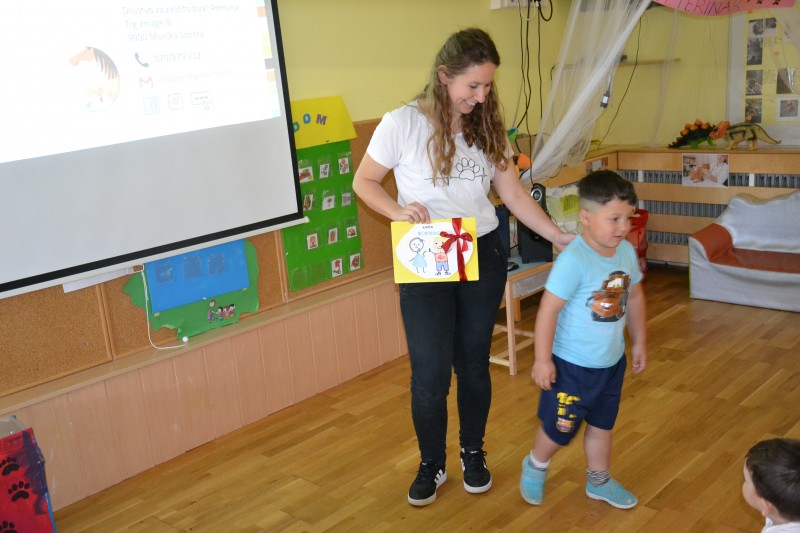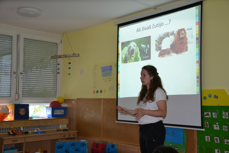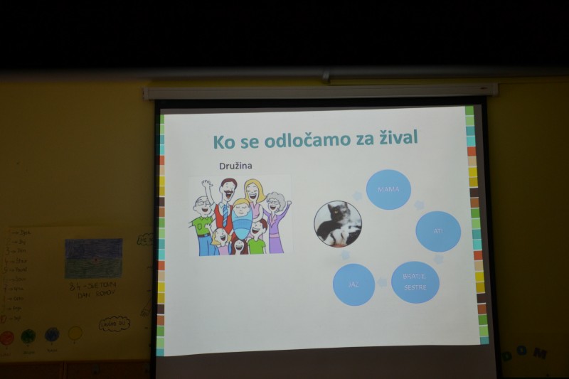 K nam smo povabili Društvo za zaščito živali Pomurja z namenom, da jim predamo hrano, ki smo jo pridno zbirali za živali brez doma. Oni pa so nas poučili, kako moramo skrbeti za svoje živali. Naučili smo se nekaj novega in koristnega.