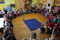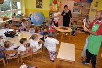 Zahvaljujemo se vsem obiskovalcem, ki so si v tednu otroka ogledali naš vrtec, se z nami igrali in sladkali. Prijateljem iz enote Veverička se zahvaljujemo, da so nam omogočili vožnjo s turističnim vlakcem, prav posebna zahvala pa gre Rikiju in Matjažu za sladko delavnico.