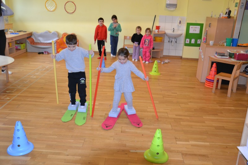 Ta teden so se posvetili predvsem spoznavanju različnih olimpijskih športov, med drugim so izpostavili predvsem smučanje in sankanje. Otroci so skozi pogovor, igro in gibanje odkrili kako potekata ta dva zimska športa, kakšno opremo potrebujemo ter kako pomembna sta varnost in sodelovanje. Spoznali pa so tudi naše olimpijske reprezentante, ki zastopajo Slovenijo na letošnjih olimpijskih igrah v Italiji.