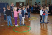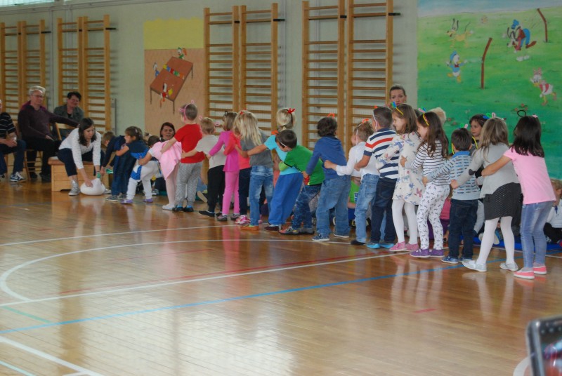 Tudi tokrat smo ob iztekajočem se šolskem letu v svojo družbo povabili babice in dedke otrok vseh treh oddelkov. Deževno vreme nam je onemogočilo, da bi se družili na prostem, zato smo prireditev izvedli v telovadnici OŠ Krog, vendar je ob prisrčnem programu otrok in druženju za nas kljub vsemu sijalo sonce.