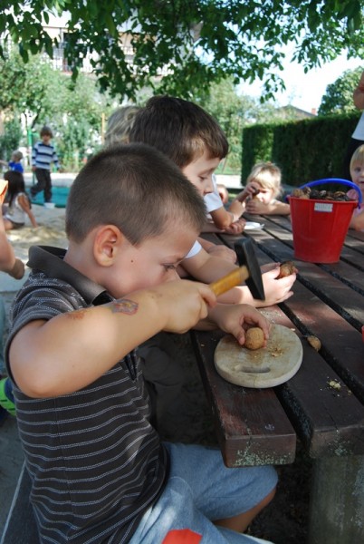 Na igrišču našega vrtca rasteta poleg ostalih dreves tudi dva oreha. V vročih poletnih dneh nam nudita prijetno senco, jeseni pa poskrbita za veselje otrok ob nabiranju in uživanju plodov. Letošnja prihajajoča jesen nas je z orehi bogato obrodila, otroci vseh treh skupin jih z veseljem nabirajo in tudi uživajo. Lepo je videti starejše otroke, ki z veseljem priskočijo na pomoč mlajšim pri lomljenju lupinic in čiščenju jedrc. Nekaj orehov bomo shranili za zimski čas, ko bomo za praznične dni spekli piškote.