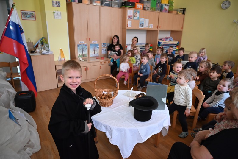 V enoti Srnica smo obeležili kulturni praznik s proslavo posvečeno Francetu Prešernu. Otroci so prisluhnili naši himni ter si ogledali animacijo Povodnega moža. Ob koncu proslave jih je razveselil "Prešeren", ki jim je, kot v starih časih, podaril sladke fige. Veselje ob tem sladkem trenutku je pričaralo pristno praznično vzdušje.
