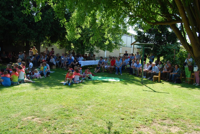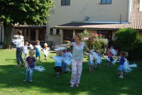 V življenju otroka igrajo poleg staršev pomembno vlogo tudi stari starši. Pogosto so tisti, ki priskočijo na pomoč mladim družinam pri varstvu in vzgoji njihovih otrok. Da bi jim pokazali, kako pomembni so v življenju vnukov, smo jih povabili v svojo družbo. Izkoristili smo sončen dan in druženje pripravili na prostem. Otroci vseh treh skupin so jim predstavili delček programa nedavne prireditve Vrtca Murska Sobota Sončni vrtiljak, jih razveselili z darilci, nato je sledilo sproščeno druženje ob prijetnem klepetu in igri razposajenih otrok.