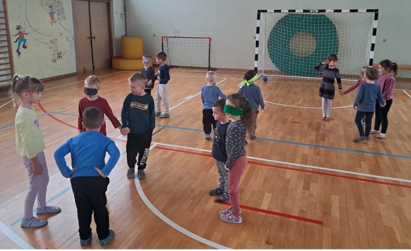 Ob glasbi in gibanju smo zaplesali ob pesmi Lepši svet Mojce Robič, kjer so otroci skozi ples začutili moč skupnosti in veselja. Izvedli smo tudi gibalno uro z igrami zaupanja, pri katerih so otroci ob pomoči prijatelja premagovali izzive, se vodili z zaprtimi očmi ter se učili odgovornosti drug do drugega.