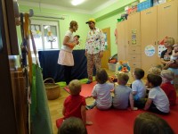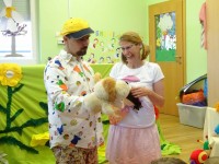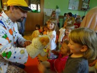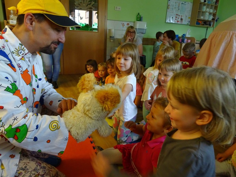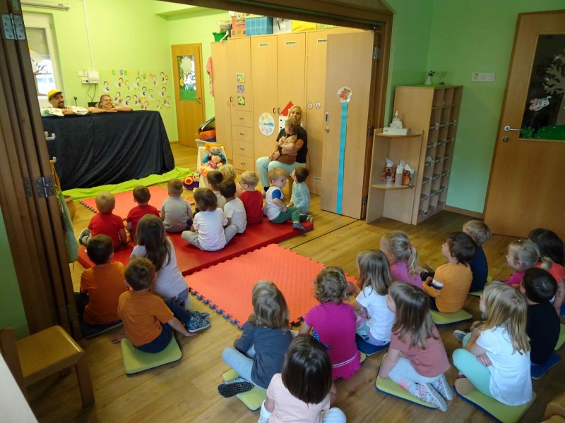 V našem vrtcu smo si danes ogledali lutkovno predstavo z naslovom "Kuža ČOHLJAJČEK", v izvedbi gledališča "ZA BOLJŠI SVET". "Kuža Čohljajček pravi, da je najbolj srečen takrat, ko ga čohljajo prijazne in nežne roke. Otroci so skozi zgodbo, pesem in z dejanskim dotikom lutk, izkusili prijetnost nežnosti in prijateljskih odnosov."