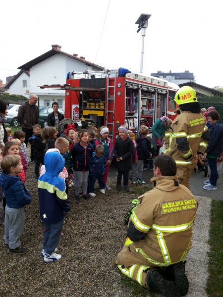 V mesecu požarne varnosti so nas obiskali gasilci PGD Murska Sobota. Ogledali smo si del gasilske opreme, se seznanili z delom gasilca in njegovim poslanstvom. Poučili smo se o pomenu varnega vedenja v vsakdanjem življenju in pomenom preprečevanja nezgod.