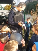Obiskali so nas policisti in nas predstavili svoje delo, opremo policistov in službeno vozilo.