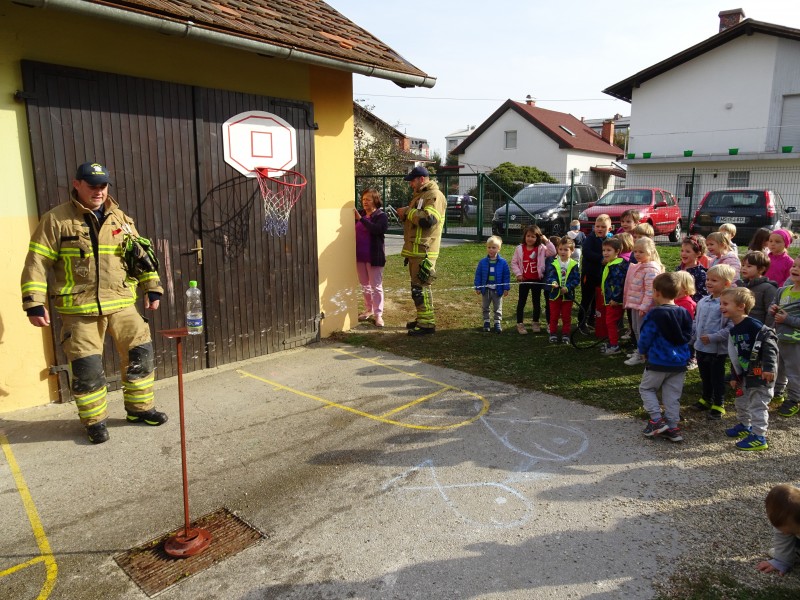 Dva gasilca sta nam na zabaven in praktičen način predstavila poklic gasilec.