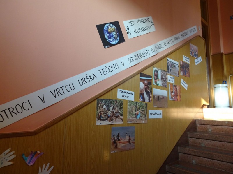 Vzporedno s tekom so potekale številne dejavnosti, preko katerih so otroci spoznali Afriko in se seznanili s težavami, ki pestijo tamkajšnje prebivalce. Naučili smo se afriško pesmico, Banaha, spoznali gibalno igrico Mamba mamba, izdelali afriški nakit in oblačila, ter preko videoposnetkov spoznali še dečka Nangira. V projekt smo povabili še starše, ki so pomagali otrokom pri razmišljanju o tem, kako ohraniti čistejši planet in izrezovanju pisanih obrisov dlani.