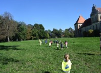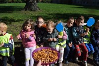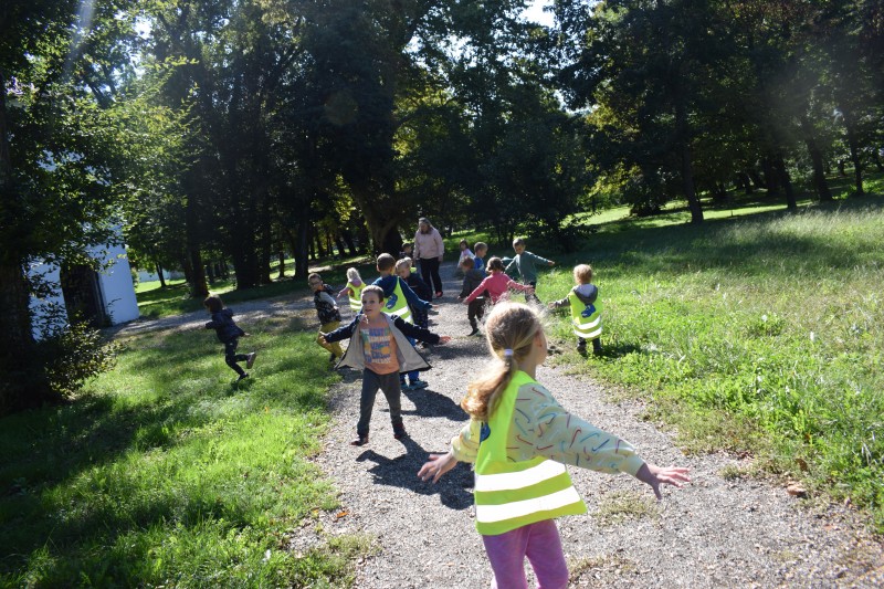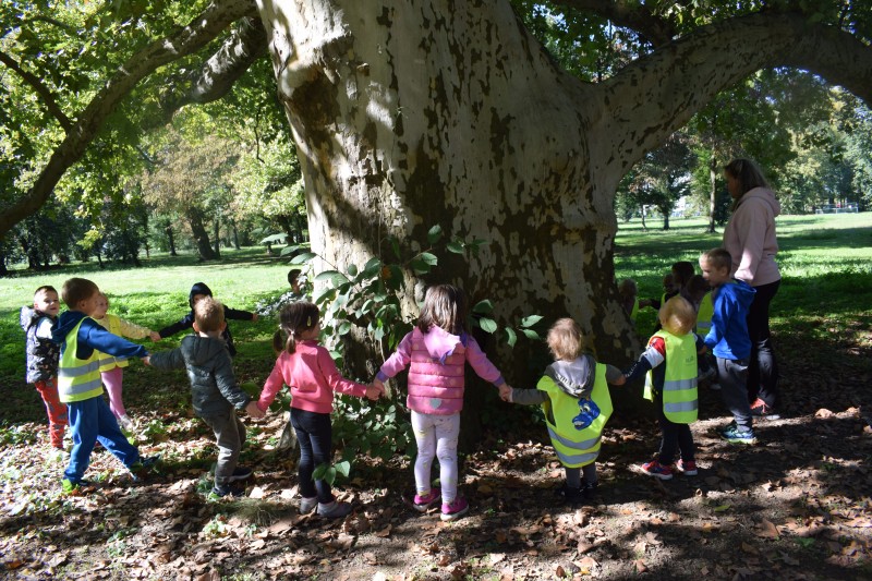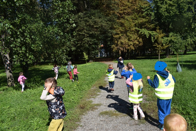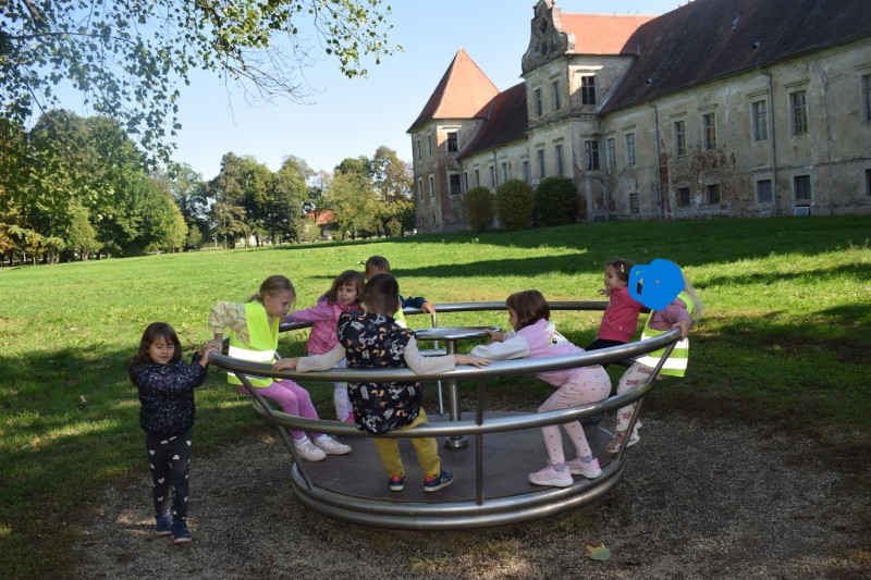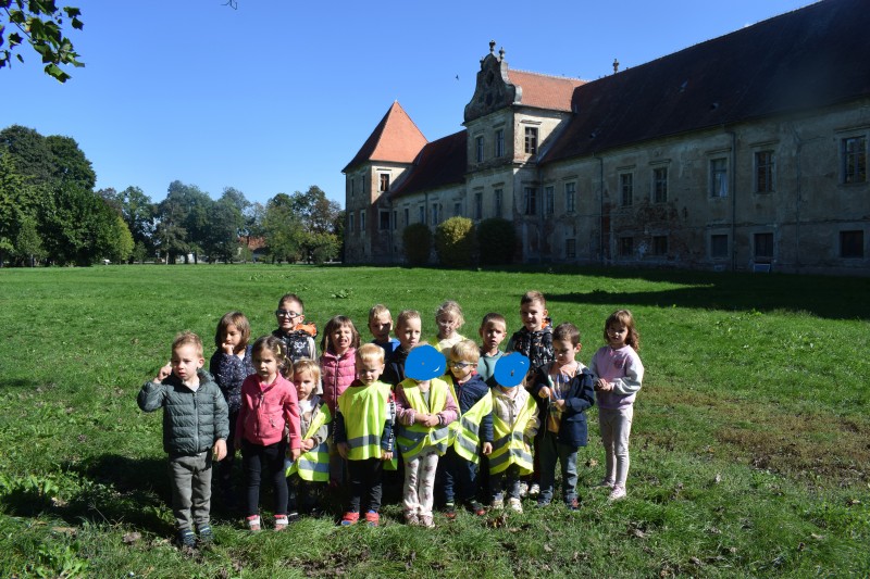 Na sončen dan smo se sprehodili do Dvorca Rakičan. Med potjo smo opazovali spremembe v naravi in uživali v jesenskih barvah. Pri dvorcu smo si ogledali konje, nato pa se igrali na igralih. Pot nazaj smo si popestrili z gibalnimi nalogami, ob katerih smo se smejali, razgibali in uživali v gibanju.