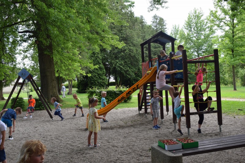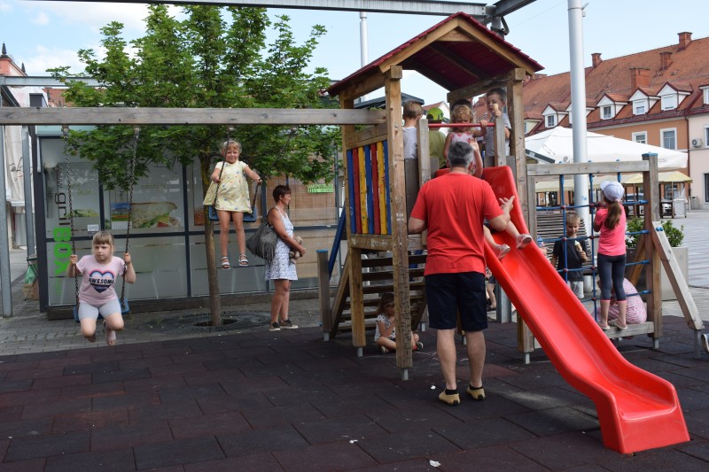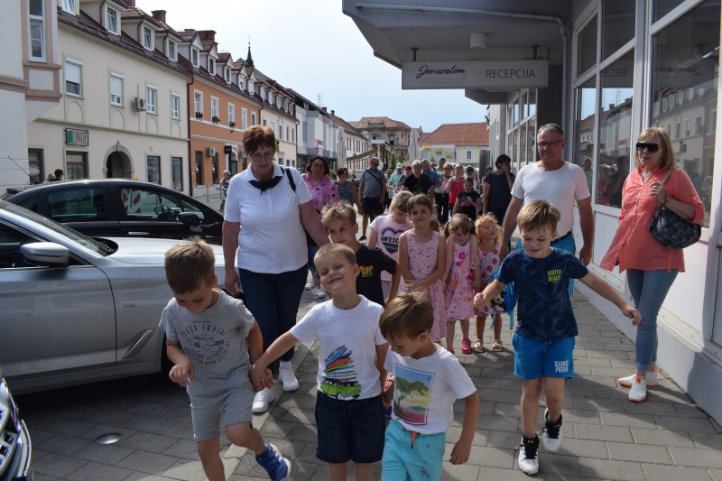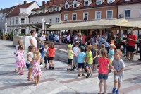 Sprehodili smo se do mesta, sledil je kratek kulturni program, nato pa smo se osvežili s sladoledom in se igrali na igralih v mestnem parku.