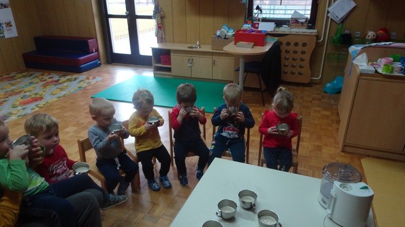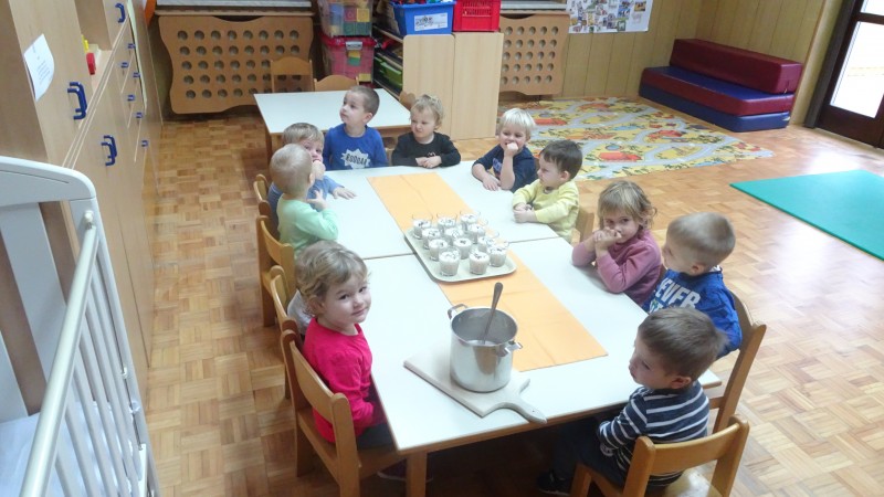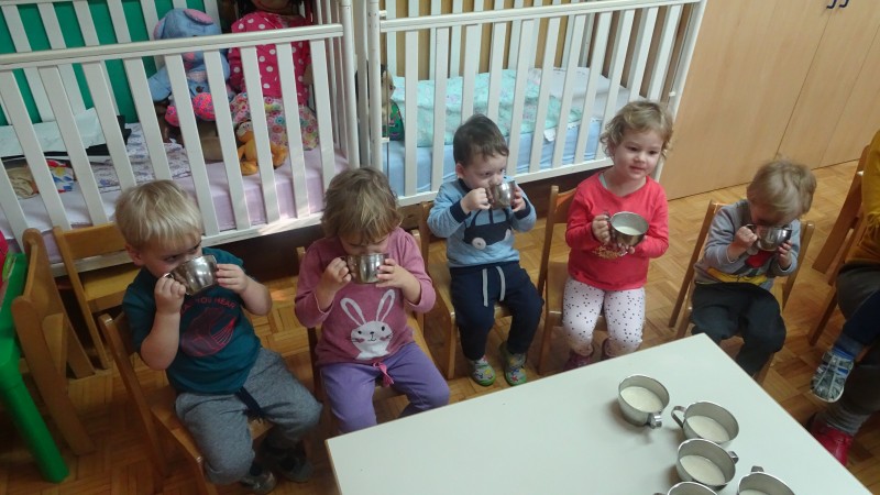 Ko iz tetrapaka v lonec priteče, mleko zasliši nekoga, ki reče: » Oh, kako je belo in dobro, zdravo,…« Zato le uživajmo mleko in mlečne izdelke, da bomo veliki, močni in bomo imeli lep nasmeh.
