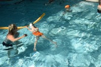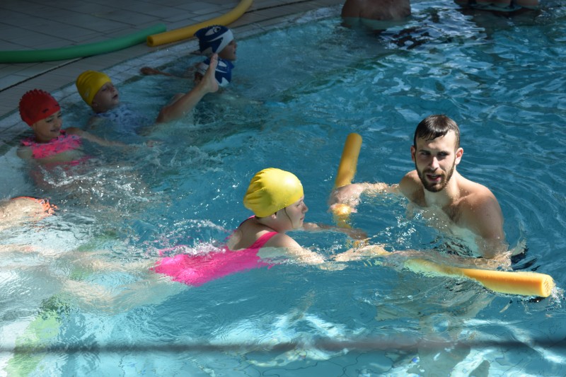 V okviru športnega programa »Naučimo se plavati« so otroci pod vodstvom plavalnega učitelja izvajali gibalne naloge, ki vključujejo prilagajanje na vodo, izdihovanje v vodi, gledanje pod vodo, potapljanje glave, plovnost in drsenje na vodi. Spoznali so tudi osnovna pravila obnašanja glede varnosti na bazenu. Še posebej pa smo se razveselili prvih plavalnih zamahov,..