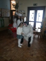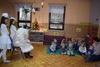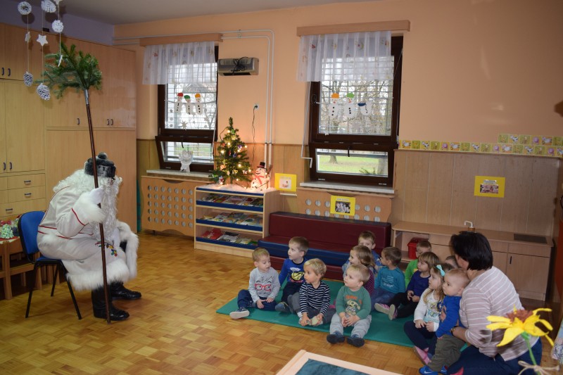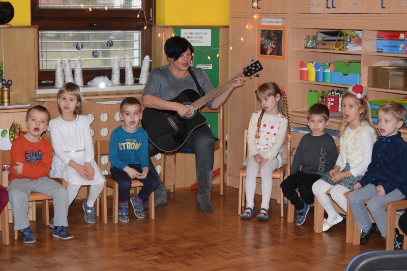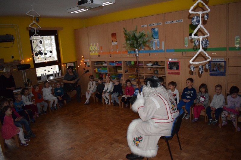 Seveda je s seboj prinesel težko pričakovana darila. V zameno zanje smo mu zapeli pesmice ob zvokih kitare, zaplesali, izročili narisane risbe ter poklepetali.